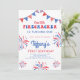 Convide a família e os amigos para uma celebração festiva com o nosso moderno 4 de julho Pequeno Firecracker Primeiro Convite de Aniversário! Este convite vibrante apresenta cores vermelho, branco e azul patrióticas com fogos de artifício divertidos, perfeito para uma pequena festa de aniversário no Dia da Independência. Personalize com os detalhes do seu evento para definir o palco para uma festa de aniversário divertida e memorável. Celebre o dia especial do seu pirata-fogos com estilo e talento patriótico!