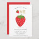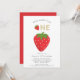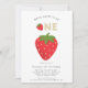 Mínimo simples doce de morango para ser um convite para primeiro aniversario temático que cria um morango grande no centro em um fundo branco nítido com o texto dizendo doce de morango para ser um , se você tem algum problema com este design, então por favor entre em contato com janine através do meu estúdio de mensagens do botão willow primavera e ficará feliz em ajudá-lo.