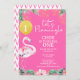 Convite Primeiro aniversario Flamingo Flamingo, cor-de-ros