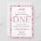 Celebre o seu marco com este elegante convite de primeiro aniversário, com uma delicada design cor-de-rosa, ao estilo do chá, e um encantador padrão. Este primeiro convite de aniversário, cor-de-rosa, é a forma perfeita de dar o tom a uma celebração doce e memorável. Com seus sotaques de arco delicados e tons de branco suave, este design é ideal para os pais que buscam por ideias de primeiro aniversário rosadas e femininas que sejam eternos e adoráveis. O tema do arco adiciona um toque de sofisticação enquanto mantém a aparência lúdica e divertida, fazer uma bela escolha para anunciar o dia especial de sua filha em estilo.