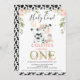 Vaca Impressão Santa Vaca primeiro aniversario Floral Convite à vaca em grão Foi criado o primeiro convite de aniversário para uma menina de raça branca e negra, um padrão de impressão de vaca em aquarela e adoráveis arranjos florais cor-de-rosa. Este design também apresenta um brilho dourado falso amovível na frente do convite. Este convite para o primeiro aniversário de uma vaca sagrada é uma maneira fofa de convidar convidados para uma primeira festa de aniversário temática de uma vaca.