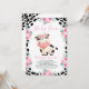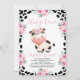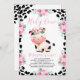 Santa Vaca, primeiro aniversario Floral. A vaca branca recebeu o primeiro convite de aniversário de uma menina que apresenta uma vaca branca e negra, um padrão de impressão de vaca aquosa e um adorável arranjo floral rosa rosa
