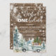 Caminhão de Madeira Russo Pinheiros Árvores de Inverno Onederland Floco de Neve Convite para primeiro aniversario Onederland Floco de Neve primeiro aniversario Convite