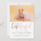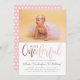 Celebre o seu primeiro aniversário com estes bonitos convites de aniversário de fotos. Apresentando "um maravilhoso" em um roteiro moderno em ouro falso rosa e rosa pastel. Personalize facilmente nosso modelo de foto padrão com uma de suas filhas! Os detalhes do seu partido aparecem em uma tipografia simples, sans-serif, com uma fonte de roteiro doce para o nome da sua filha. Ao contrário, há um padrão de bolinhas em branco contra rosa.