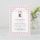 Convite para primeiro aniversario Gingham Halloween Ghost Girl Rosa