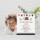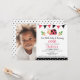 Foto Red Black Bolinhas Ladybug Convite para primeiro aniversario Ladybug Cuide do nosso convite de aniversário de ladybug apresentando uma ladybug, algumas flores e folhagem, bem como uma bandeira de bunting. Este convite de aniversário da joia pode ser usado para qualquer idade e apresenta uma foto na frente.
