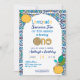 Celebre o primeiro aniversario do seu docinho com este convite de festas de limonada inspirado em Itália, concebido para diversão ao ar livre. Apresentando limões desenhados à mão, uma fatia de limão como o "O" em UM, e um vibrante fundo amarelo e azul inspirado no azulejo italiano, este bonito primeiro convite de aniversário reúne todo o sol de um piquenique na costa Amalfi. O verso inclui os jardins de limonada cor-de-rosa e amarela para dar o tom para uma reunião divertida e casual. Perfeito para o aniversário de uma menina no verão, esta modelo é ideal para convites de aniversário de limonada, festas com tema limão, picnics de quintal, almoço com tema de limão, ou apenas uma festa de aniversário de verão casual com familiares e amigos próximos, isso convida a gravatas.