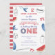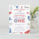 Um design de 1º aniversário de uma festa de beisebol Red White e Blue adequado para um menino ou menina ou mesmo gêmeos.
