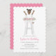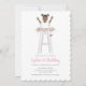 O primeiro convite de aniversário cor-de-rosa apresenta uma adorável menina sentada em sua cadeira alta e adornada com um beliche floral com uma letra "um". Personalize o bebê para se parecer com a aniversariante escolhendo cor de cabelo e tom de pele. A inscrição no bunting pode ser alterada para o número ortográfico "dois". Bolo de aniversário divertido com idade nas costas.