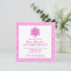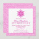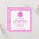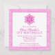 Um convite de aniversário moderno de inverno. Apresentando falso brilho e floco de neve em rosa. Designs são gráficos impressos em formato plano - NÃO É VERDADEIRO GLITTER.