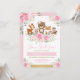 Bonita floresta temida convite de primeiro aniversario com rosas cor-de-água rosa macia, verde elegante e animais florestais adoráveis