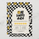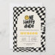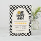 O sorriso do primeiro aniversario fica preto, branco e amarelo, relâmpago de penteado, legal convite de aniversário.