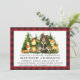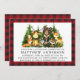 Watercolor Woodland Animal First Birthday Invitation. Os bebês incluem Urso, Veado, Moose, Raccoon, Coelho, Raposa e Coruja com um pano de fundo de pinheiros. Estilo de Papel Kraft, Pinheiro Verde Florestal, Xadrez de Buffalo Vermelho.
