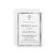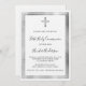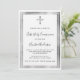 Um moderno, elegante e convite. Um fundo branco decorado com uma cruz, falsos quadros prateados. Personalize e adicione um nome e detalhes. Texto preto.