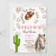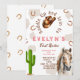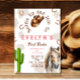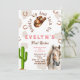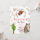 Convite de Primeiro Rodeio Cavalo Western Chapéu de Cowboy Cacto para meninas e meninos, tema western com padrão de cavalo e ferradura na frente e atrás