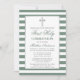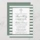 Convite Primeiro Sagrado Comunhão Silver Sage Green Stripe