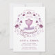 Este cartão de convite, bonito e moderno, de 5" x 7", da Primera Comunión Invitación (Primeira Comunhão Santa), apresenta um cálice e uma bolacha roxos (comunhão sagrada) rodeados de uma coroa floral e as palavras "Primera Comunión" escritas em caracteres elegantes. Ideal para a ocasião religiosa especial de sua garota, pode ser personalizado para seu gosto com o nome e a informação do evento de seu filho.