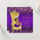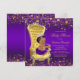 Convite de chá de bebê de princesa afro-americana com adorável bebê afro-americana usando um lindo tutu roxo, pérolas e coroa de diamantes sentada em uma bela cadeira dourada sobre um fundo roxo e dourado com glitter e confetes. Este lindo convite de chá de bebê roxo e dourado é facilmente personalizado para o seu evento, basta adicionar seus detalhes no estilo de letra, cor e texto de sua escolha. Este é um design impresso sem glitter real, confetes, jóias, etc.