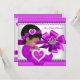 Convite de Princesa Afro-Americana Chá de Bebê Menina Fofo Rosa Roxo Diamantes Corações, Coroa de Diamantes Tiara Pequena Princesa "é uma menina" Convite de Festa. Chá de Bebê Elegante Étnico. Eventos para Mulheres, Convites de Festa para todos basta personalizar.