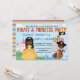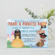Princesa Afro-Americana e Pirata Duplo Aniversário: Ahoy, aí está a sua alteza! Nossa princesa de aniversário e convite de piratas, reúne dois personagens populares na história do conto de fadas. Este convite cheio de fantasia apresenta um pirata afro-americano em sua nave e princesa perto do mar. É o convite ideal para irmãos terem uma festa conjunta. Me dê timbres. É perfeito para garotas e garotos de todas as idades. Deixem seus amiguinhos decidirem andar pela prancha ou brilhar como uma princesa encantadora. Vejam as opções dos nossos piratas e da nossa coleção de festas princesa. Arrgh!