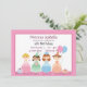 Este convite de aniversário feericamente bonito da princesa caracteriza quatro princesas pequenas prontas para party. Completamente customizável.