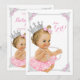 Convite de chá de bebê com princesa bailarina com tutu rosa pérolas e laços com adorável bebê menina vestindo um lindo tutu rosa e colar de pérolas sobre um belo fundo de pérolas brancas e laços. Este convite de chá de bebê elegante de princesa bailarina com tutu e pérolas é facilmente personalizado para o seu evento, basta adicionar os seus detalhes no estilo de letra de sua escolha. Você também pode alterar a cor do fundo neste adorável convite de chá de bebê com pérolas. Este é um design impresso sem pérolas, laços, etc. reais.