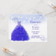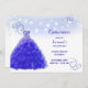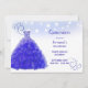 Surpreenda todos os seus hóspedes com esta design de vestido azul mágico e princesa para a doce honra dos quinze. Diamond glitz, overlay, e rodando motivos reluzentes no vestido, e mais dois motivos nos cantos superior esquerdo e inferior direito, sob luzes brancas de cordas em fundo branco.