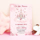 O design do convite de aniversário apresenta um castelo cor-de-rosa sonhador flutuando em nuvens macios, cercado por borboletas e faíscas fluentes — perfeito para o dia mágico da sua pequena princesa. Script elegante e fontes divertidas destacam a ocasião, com detalhes personalizáveis como nome, idade, data, hora, local e RSVP. Ideal para uma celebração de aniversário com tema de conto de fadas, este convite adiciona um toque encantador e caprichoso ao seu planeamento partidário. Personalize facilmente para corresponder ao seu evento!