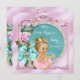 Convite Princesa Chá de fraldas Floral Teal Pink Blona Beb