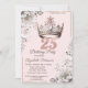Uma coroa princesa moderna, chica e glamourosa e flores em fundo rosa. Um convite bonito que pode ser personalizado com seu nome. Selecione o botão "personalizar" para alterar o estilo, a cor e o tamanho da fonte.