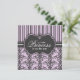 Convite Princesa Damask & Stripe Chá de fraldas Preto Roxo