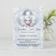 Um belo e mágico portal brilhante tem um dentro brilhante de estrela brilhante e é enquadrado por delicados flocos de neve brancos. Uma princesa de fadas peludas de pele clara angélica com olhos azuis grandes e cabelos brancos longos está em frente ao portal com suas asas brancas etéreas espalhadas completamente abertas. Ela também é enquadrada por branquelos suaves que caem neve dançando no ar contra um fundo azul pálido. Este convite para descarregar e imprimir é ideal para um conto de fadas; fadas; Maravilha de inverno, quinceanera, 16º aniversário mítico ou celebração de casamento. Simplesmente personalize os modelos para atender às suas necessidades.