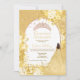 Uma elegante e chica reviravolta moderna à Quinceañera tradicional com uma rosa de coroa tiara de ouro reluzente, e um vestido de princesa amarela onde você pode mudar a pele e a cor do cabelo (basta ir à ferramenta design e escolher a pele e a camada de cabelo e escolher sua cor). Apresentando um bonito buquê floral e botânico com rosa dourado confetti e uma forma moderna de arco brilhante, com uma elegante tipografia Quinceañera aniversário com princesa pintada à mão com dobra amarela com brilho. Adicione a sua foto atrás, perfeita festa de aniversário de Mis Quince com uma rosa-princesa de ouro tiara.