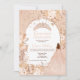 Uma elegante e moderna reviravolta para a Quinceañera tradicional com uma rosa de coroa tiara de ouro brilhante, e uma princesa rosa e pastel, cor-de-rosa, onde você pode mudar a pele e a cor do cabelo (basta ir à ferramenta design e escolher a pele e a camada de cabelo e escolher sua cor). Apresentando um bonito buquê floral e botânico com rosa dourado confetti e uma forma moderna de arca brilhante, com uma elegante tipografia Quinceañera aniversário com rosa claro pintada à mão, cor de pêssego com brilho. Adicione a sua foto atrás, perfeita festa de aniversário de Mis Quince com uma rosa-princesa de ouro tiara.
