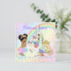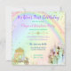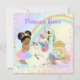 Um convite mágico para uma celebração mágica! Castelo do arco-íris com carruagem e unicórnio e, claro, a linda princesinha em seu tutu e coroa do arco-íris.