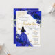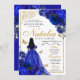 Convite de aniversário de Quinceanera Floral Dourada Real Azul