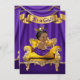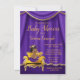 Púrpura e princesa dourada convidam uma adorável menina a vestir um tutu roxo bonito e pérolas com coroa roxa e dourada numa bela cadeira roxa e dourada e fundo de cortina. Esses convites bonito para chuveiros roxos e dourados são facilmente personalizados para seu evento simplesmente adicionando seus detalhes no estilo de fonte que você prefere.