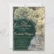 Dourada tiara, vestido, rosas e diamantes em um fundo verde.