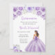 Este convite da Quinceanera apresenta uma bela princesa num vestido roxo empoeirado com arranjos florais. Isto é perfeito para uma festa de aniversário de Quinceanera.