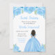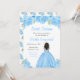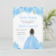 Este doce 16 convite apresenta flores florais azuis brilhantes e brilhantes e uma bela princesa com pele escura e um vestido elegante. Isto é perfeito para uma doce festa de aniversário de dezesseis.