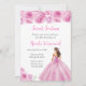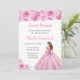Este doce 16 convite apresenta uma bela princesa em um vestido de bola de rosa claro com arranjos florais. Isto é perfeito para uma doce festa de aniversário de dezesseis.