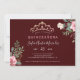 Convite Princesa floral elegante tiara burgundy Quinceaner