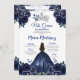 Princesa Marinha Elegante Prata Floral Mis Quince Convite Quinceañera, Mis Quince 15 Anos, 16 Borboleta Aniversário.