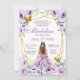Convite para Princesa Quinceanera Dourada Elegante Roxo Mexicana | Querida Quinceasera Birthday Girl, Geométrica Dourada Royal Princess Quince Convite, Castelo Puro e Floral Quinceanera, Festa de aniversário Mexicana.