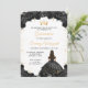 Este elegante e glamouroso convite de aniversário da Quinceañera apresenta uma bela princesa com cabelo escuro num vestido preto. O texto combina o script manuscrito e as fontes sans serif modernas para um aspecto elegante e sofisticado. Os arranjos florais e o confete de ouro criam a mistura perfeita de rústicos e quicos. Gráficos por www.etsy.com/uk/shop/SunflowerDayLove