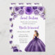 Este doce 16 convite apresenta uma bela princesa em um vestido de bola roxa escura com arranjos florais. Isto é perfeito para uma doce festa de aniversário de dezesseis.