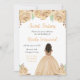 Este doce 16 convite apresenta flores florais de creme de pêssego, falso brilho, e uma bela princesa com pele escura e um vestido elegante. Isto é perfeito para uma doce festa de aniversário de dezesseis.