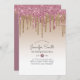 O convite temático (e não a brilho real), moderno e vibrante, pingando ouro rosa, brilha com tendências tipográficas e fontes de estilo manuscrito. Os campos de texto de modelo em ambos os lados do convite permitem que você adicione quaisquer detalhes extras do evento, incluindo rsvp, instruções, detalhes do registro de presentes, recepção e muito mais. Para itens correspondentes, as edições personalizadas do contato Designer LeahG.
