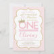 Edite este convite de primeiro aniversario da princesa dourada e rosa com seus próprios detalhes.