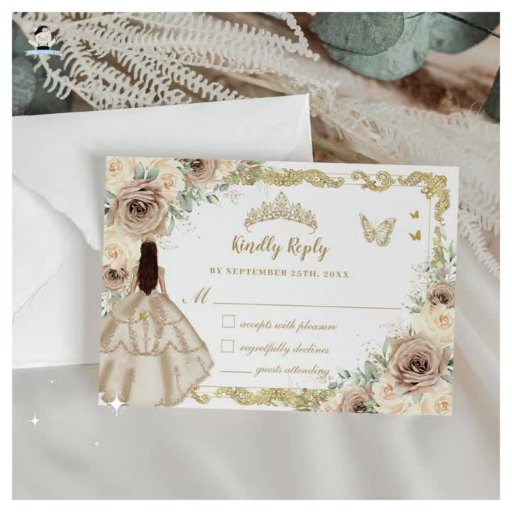 Convite Princesa Quinceañera Champagne Rosas Florais